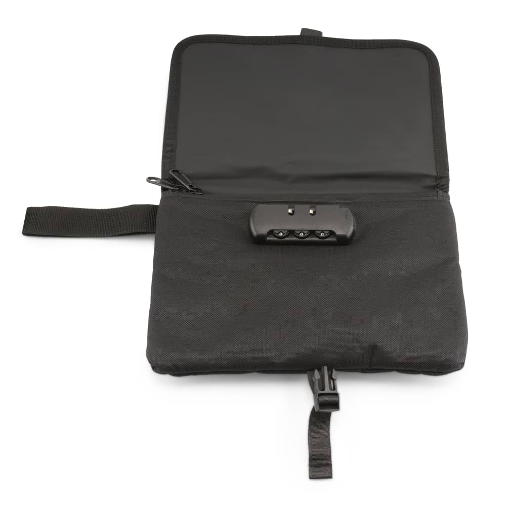 1. Smell-proof, lockable Pouch with cover/rolling tray