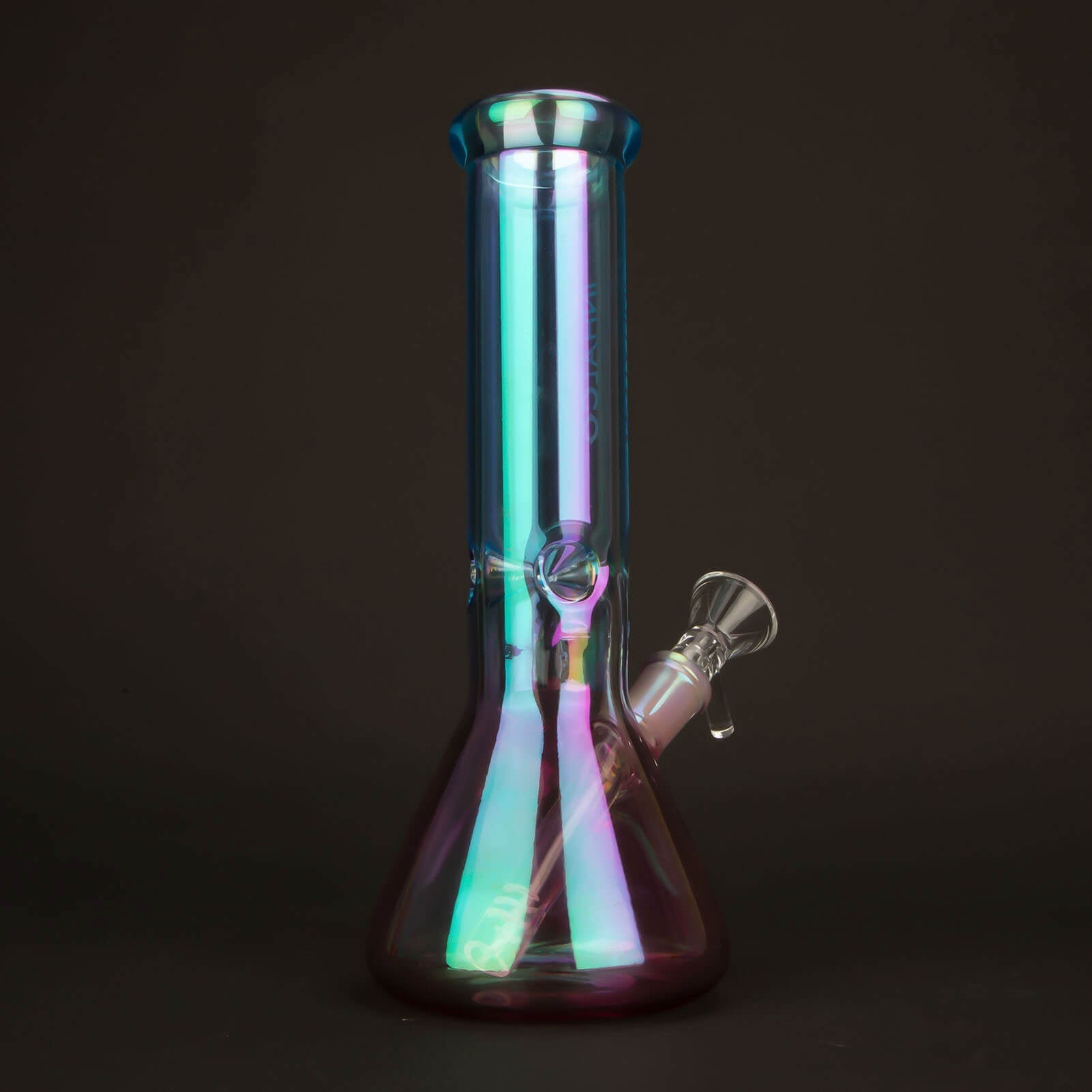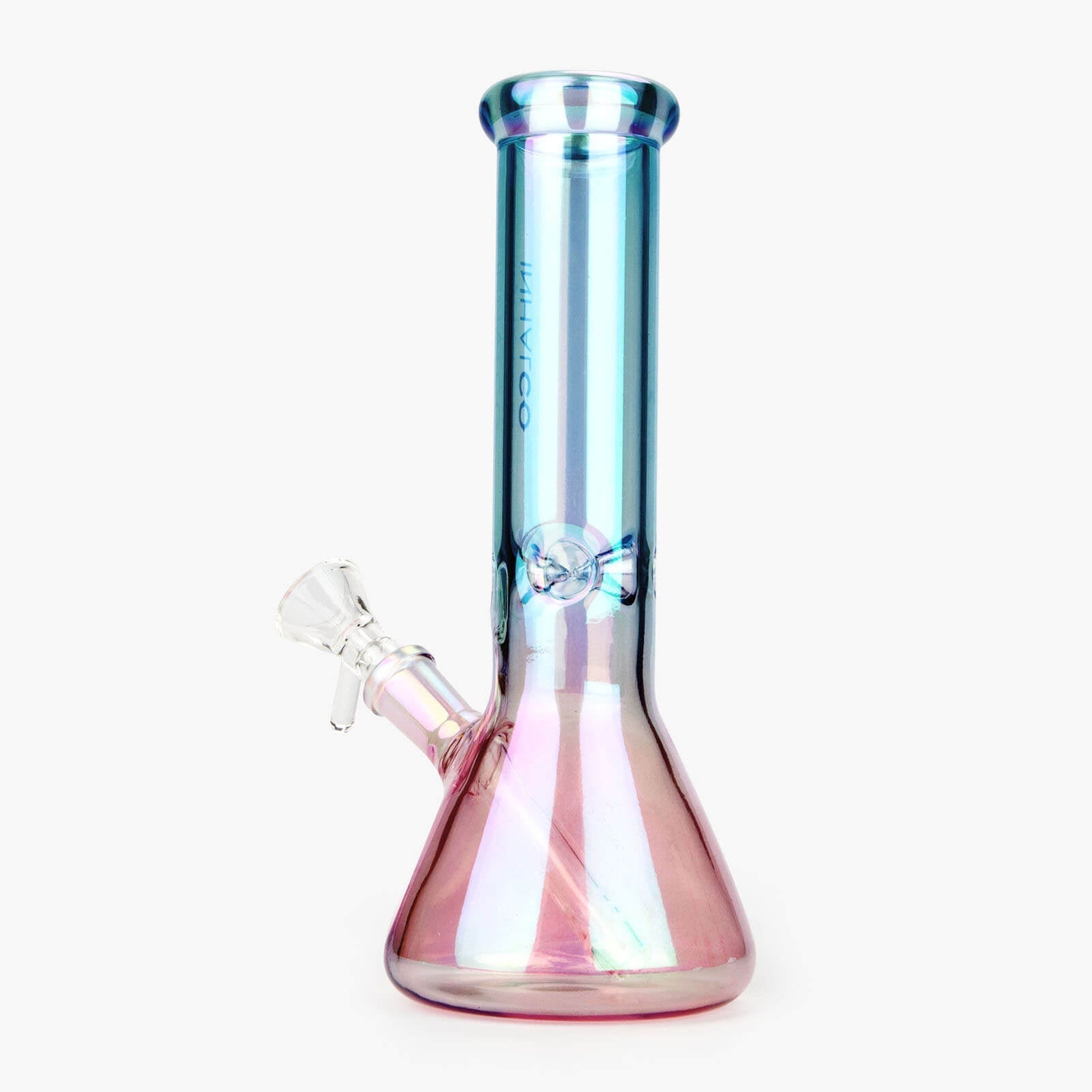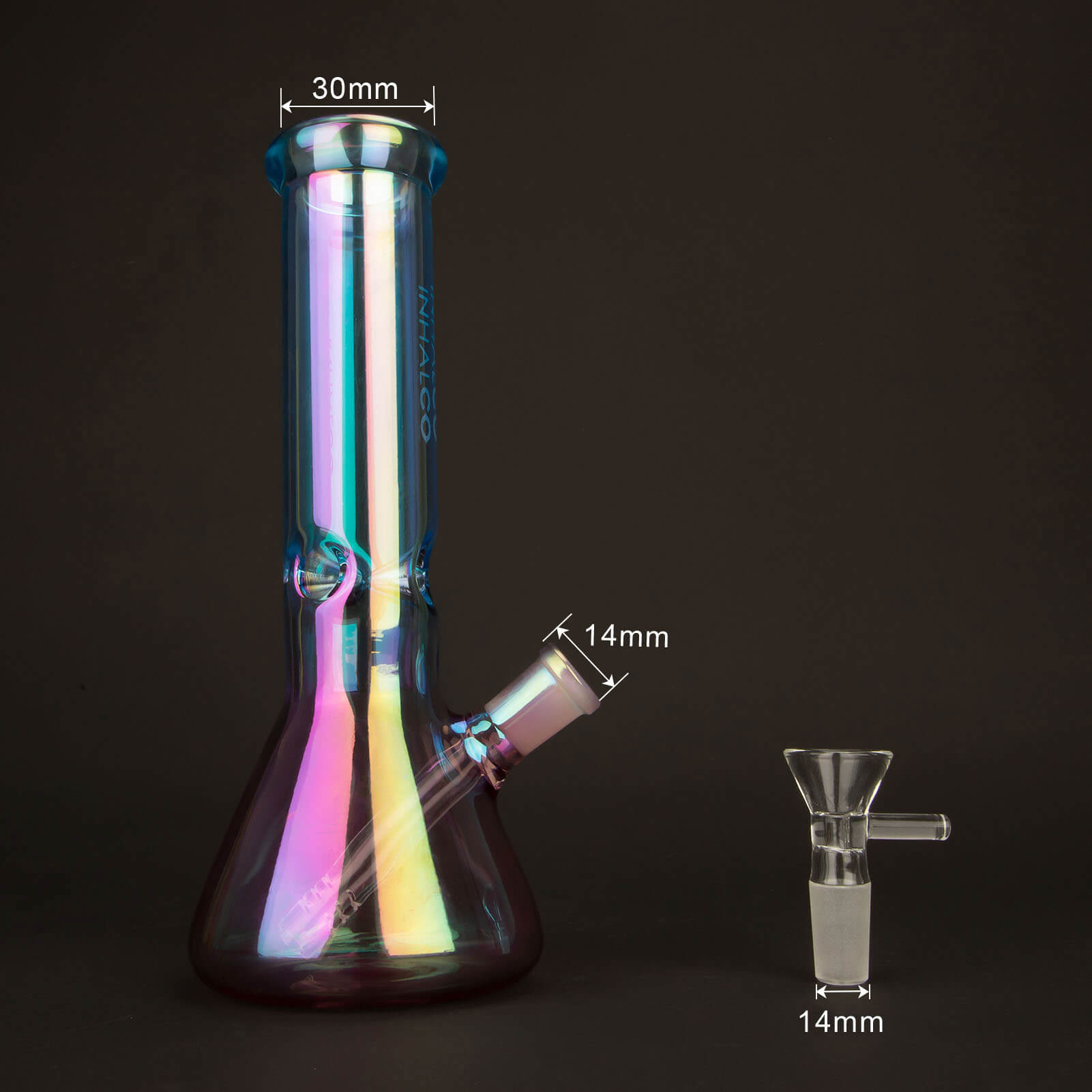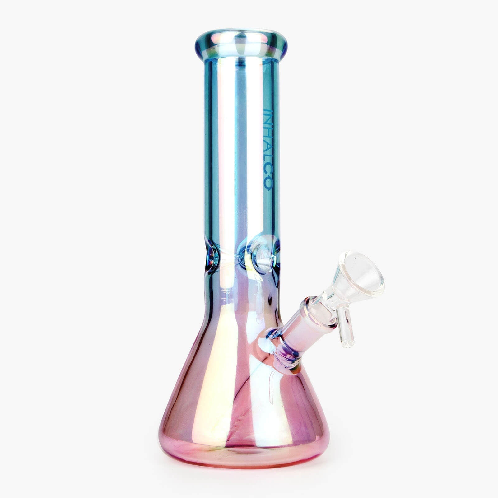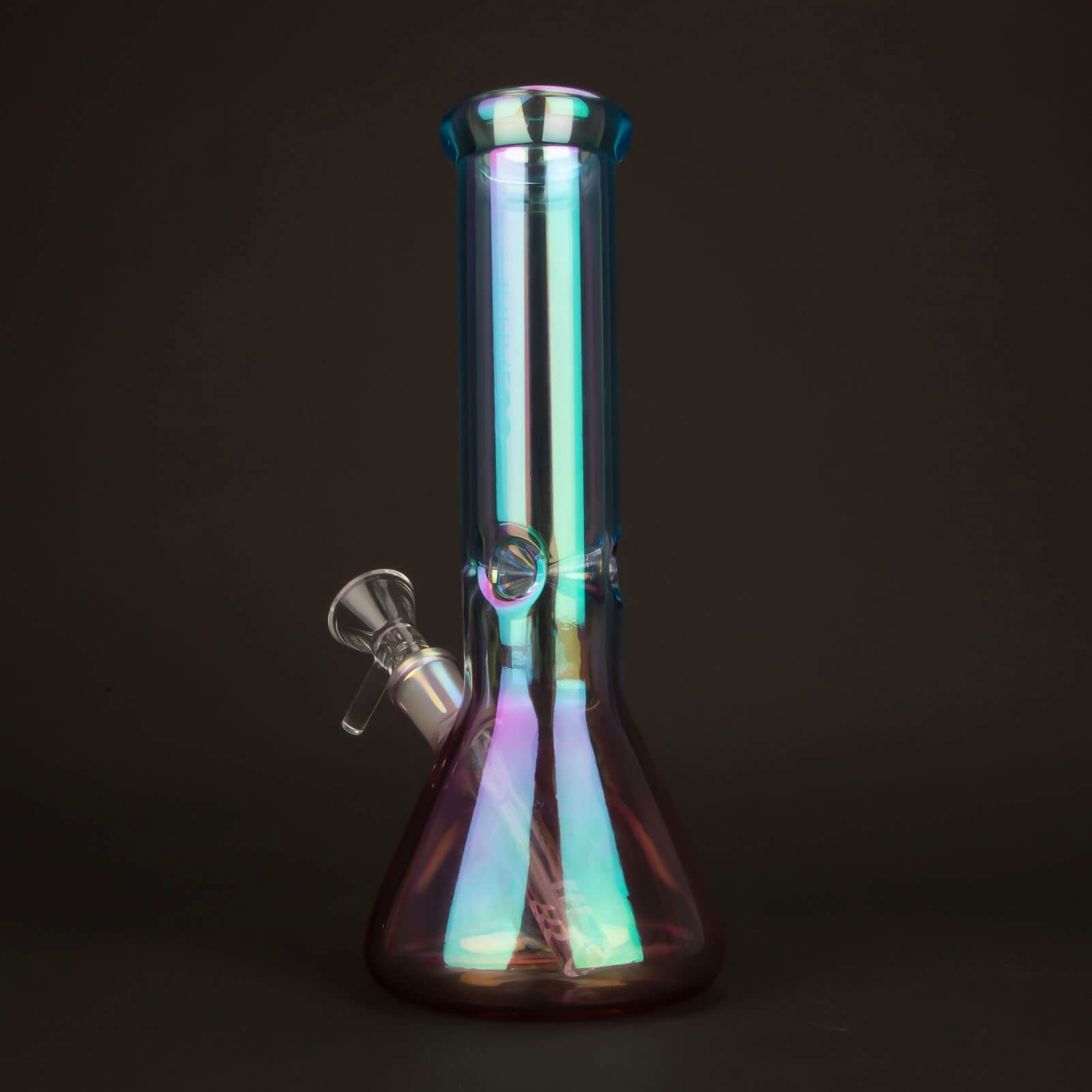 This mesmerizing Iridescent Beaker Bong stands at a height of 8 inches. This compact yet stunning piece features a sturdy classic beaker base design for stability. The iridescent color scheme delights with a dazzling combination of blue and pink hues, creating a captivating visual experience. Equipped with a fixed downstem, this bong ensures smooth and filtered hits. Included is a 14mm male bowl, making it ready for your smoking sessions. Elevate your smoking experience with this enchanting and functional iridescent beaker bong.